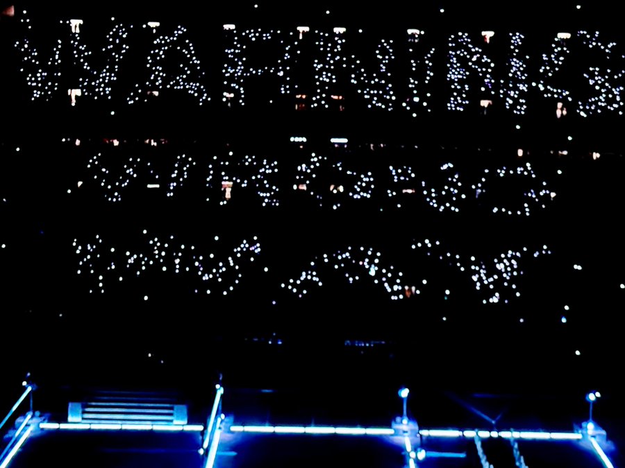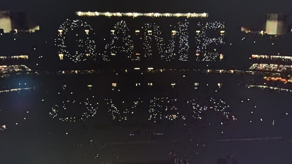 Por último, se acaba la canción y en la tribuna aparece el mensaje “Game Over” que va en consonancia con el escenario dispuesto como si fuera los botones de un control de Play Station.